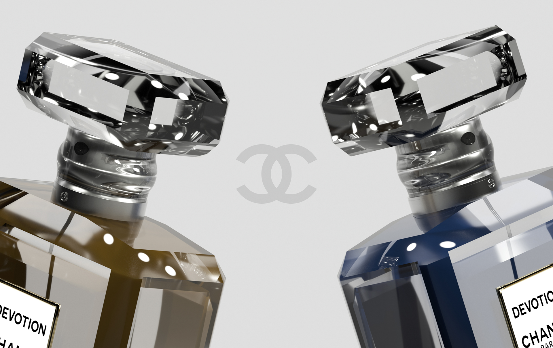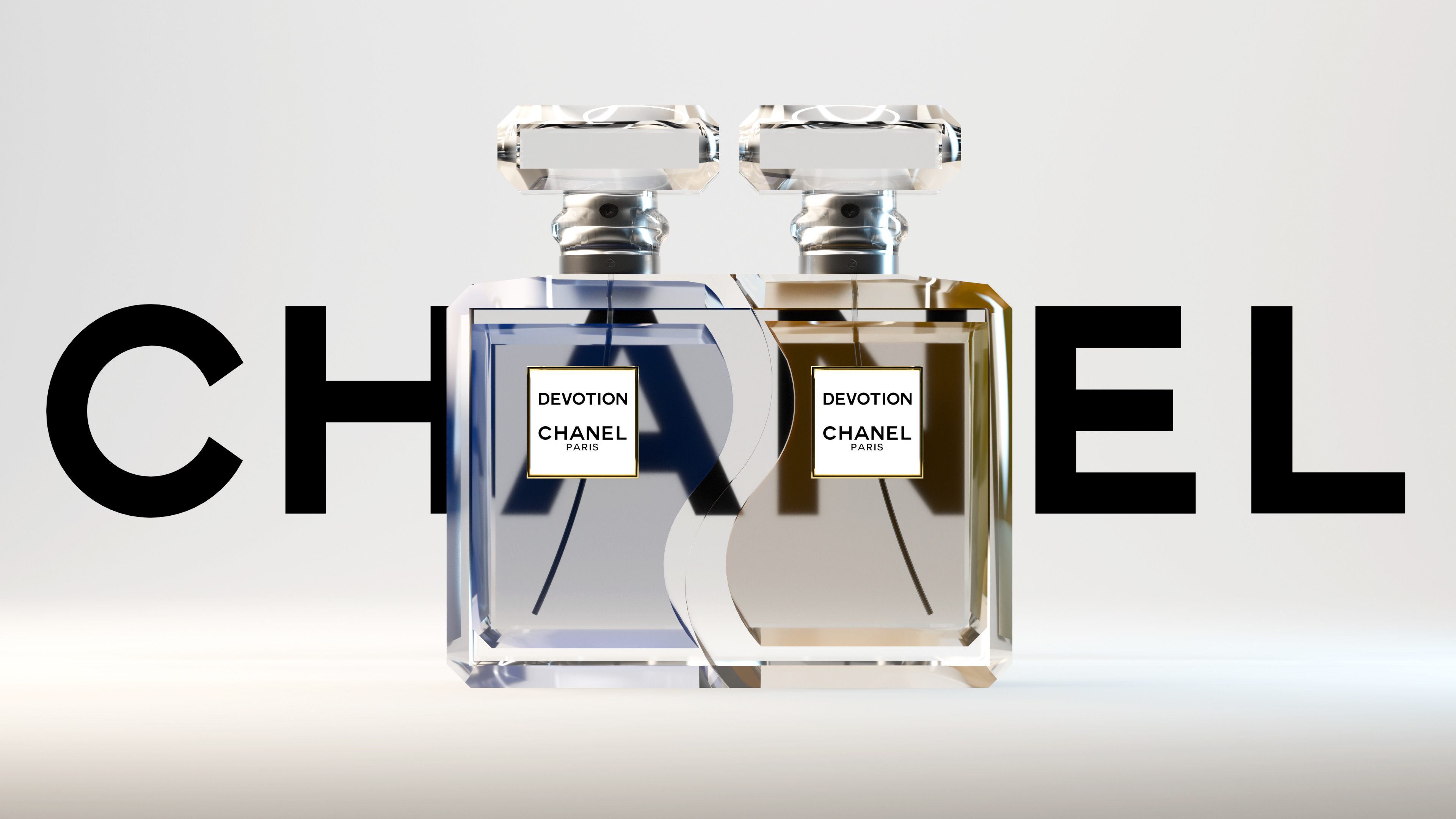 The DEVOTION perfume bottle reimagines Chanel’s iconic design language through a lens of shared intimacy. Designed as a single entity that elegantly separates into two distinct flacons, the concept celebrates the bond between a couple while honoring Chanel’s timeless aesthetic. The bottle retains the brand’s signature rectangular silhouette, paying homage to the clean lines and geometric precision synonymous with Chanel’s heritage. Each half mirrors the other, adorned with minimalist typography and a matte-black cap reminiscent of the classic No. 5 bottle, ensuring the design remains anchored in tradition while introducing a modern narrative of partnership.