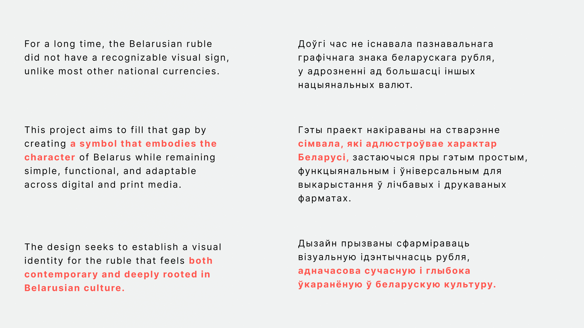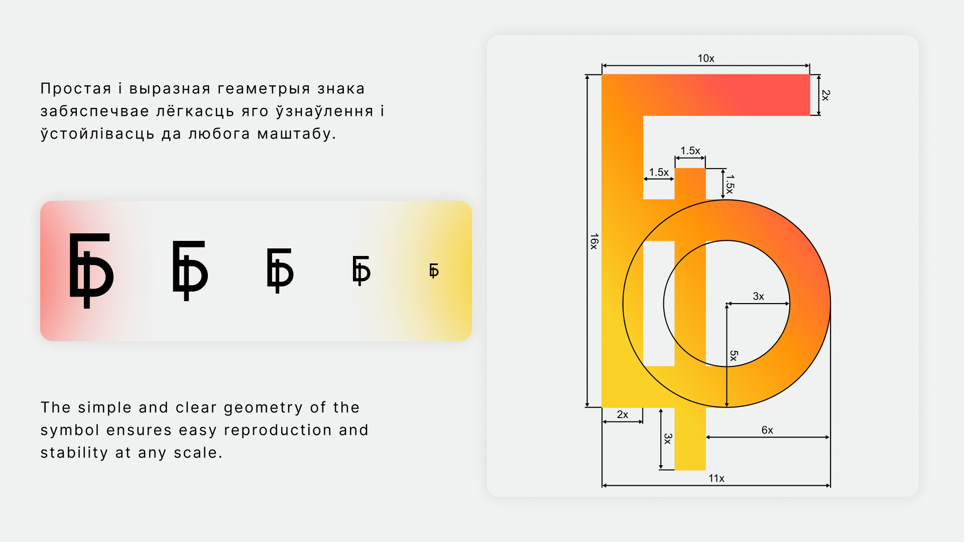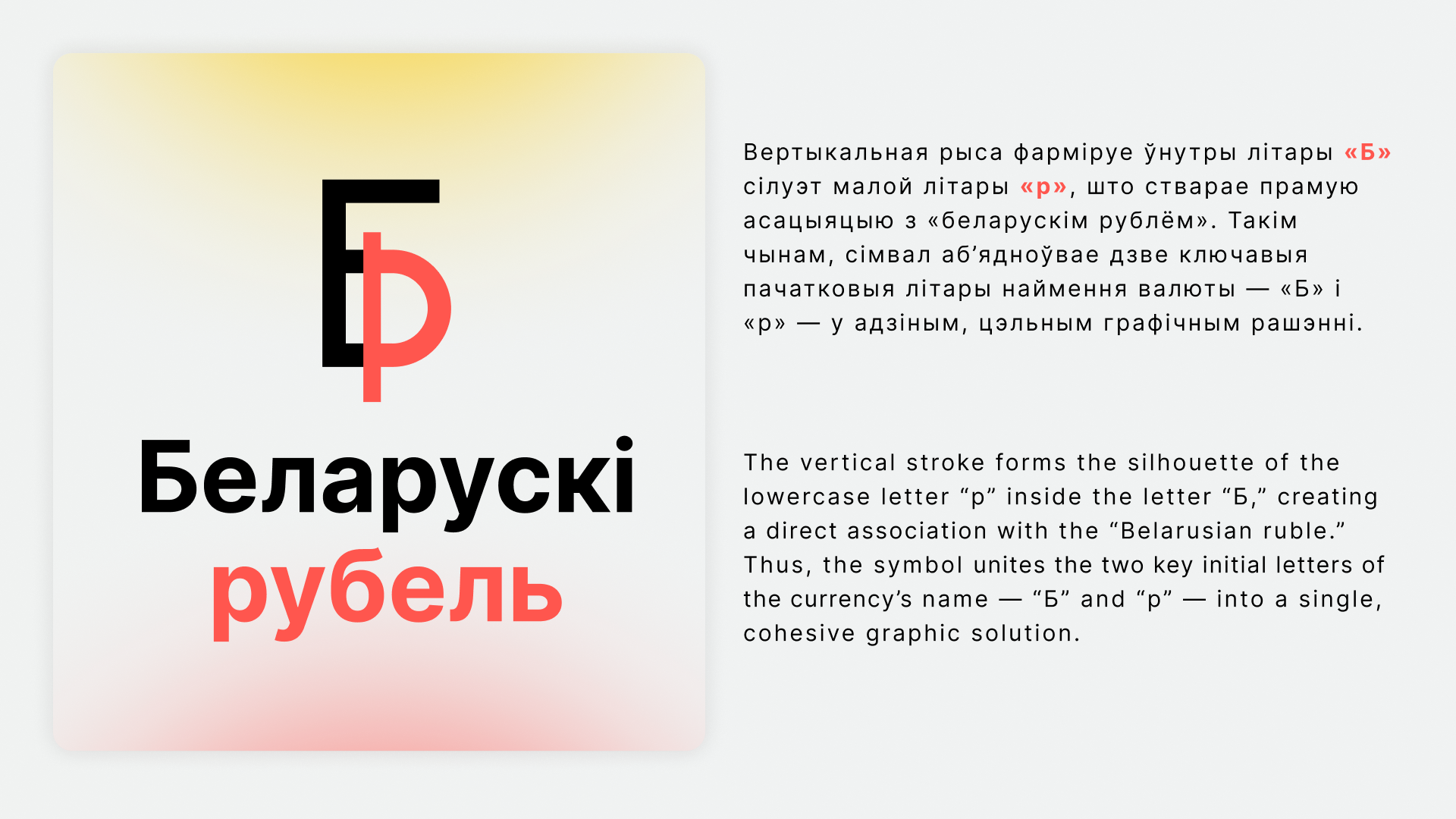 This is the concept submitted for a contest by the National Bank of Belarus to create a unique graphic sign for the Belarusian ruble